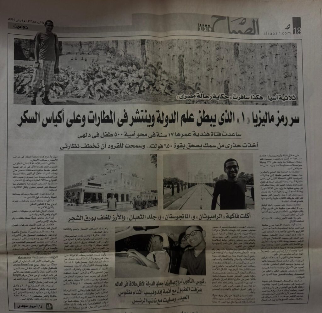 After three months across Asia, this is how an Egyptian traveler recounts his extraordinary journey. He describes how Malaysia’s “1” symbol has become a national identity, painted on walls, displayed at airports, and even printed on everyday items like sugar bags. To locals, the number signifies unity under one flag.